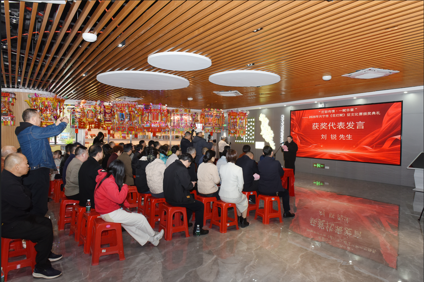 2月2日上午,“灯彩传情·一赋华章”——2026年兴宁市《花灯赋》征文比赛颁奖典礼,在兴宁市文化广电旅游局一楼旅游集散中心大厅举行。现场颁发一等奖、二等奖、三等奖、优秀奖及网络人气奖共计22个奖项。